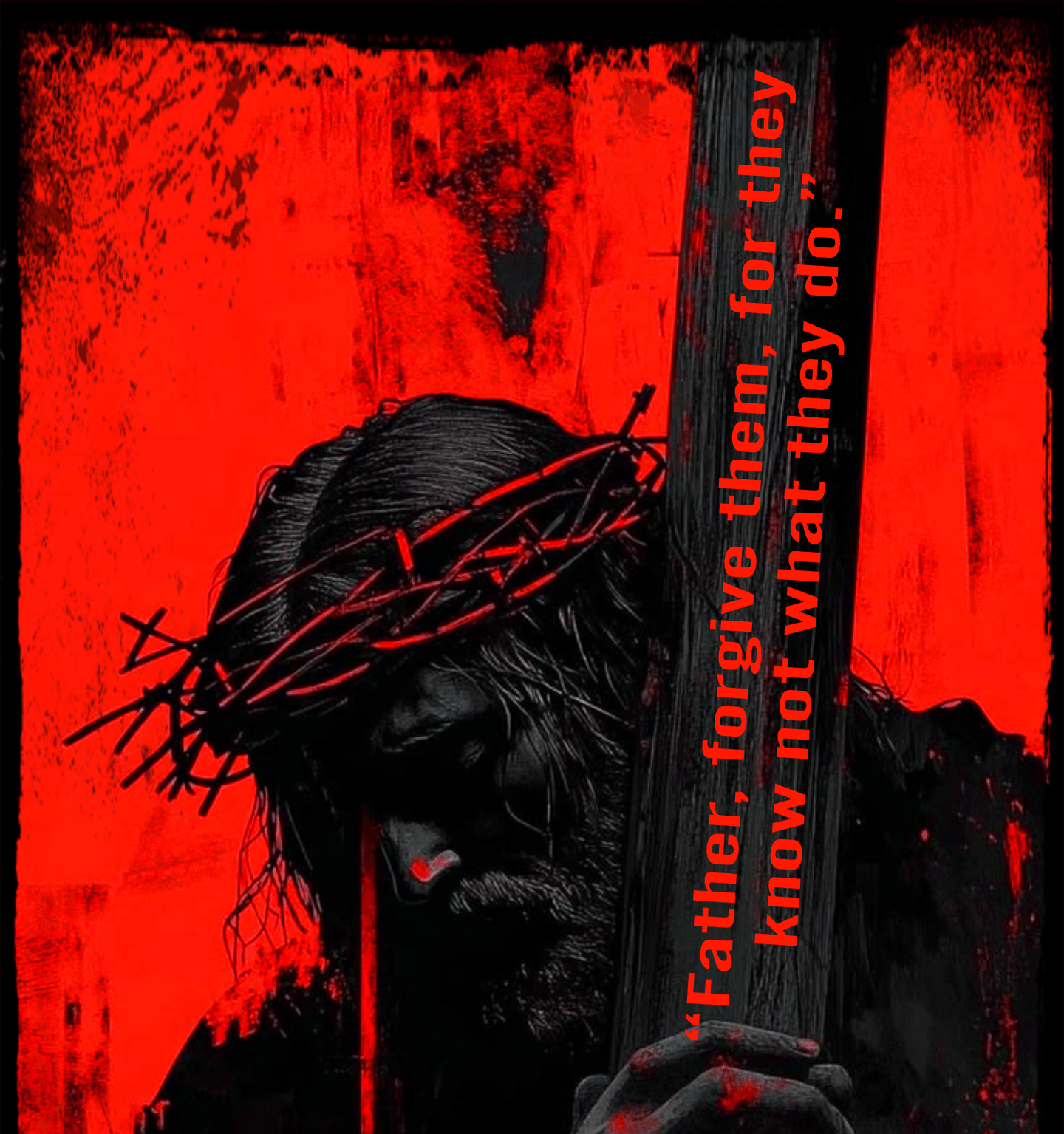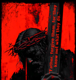 Back Detail: Large back print featuring the iconic "Father, forgive them..." quote.