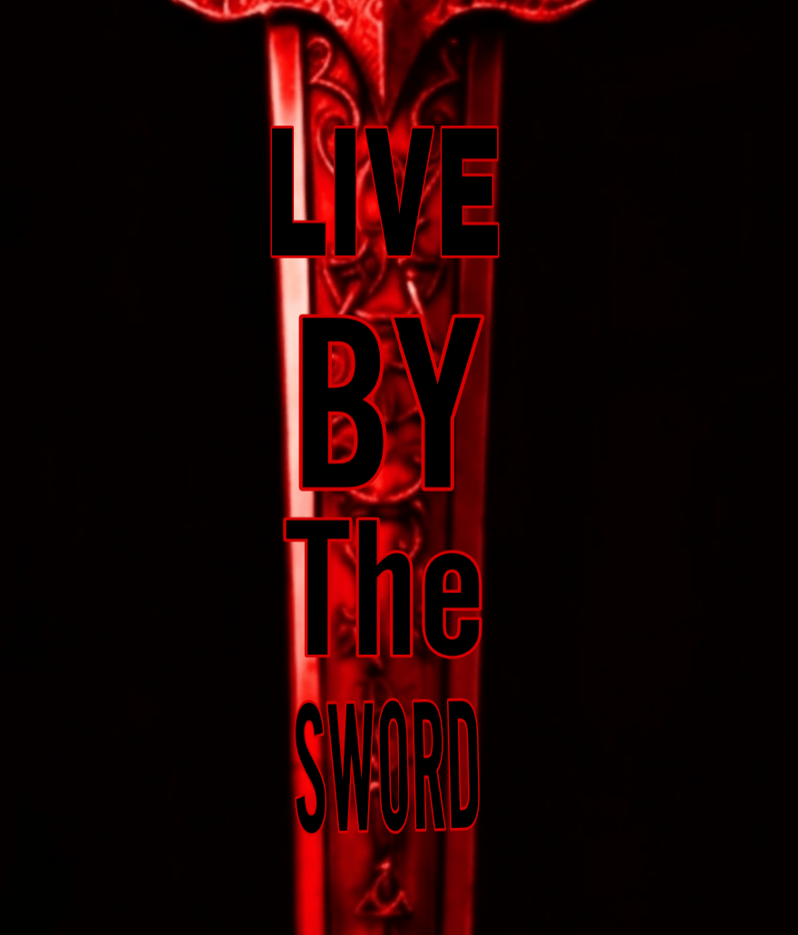 Sleeve Hits: Features "Live by the Sword" and "Die by the Sword" text over red sword graphics running down both sleeves.
